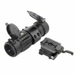 A característica especial desta lente de aumento é a montagem flip-to-side incluída: com uma pressão na cabeça, a lente de aumento salta para o lado e o RedDot pode ser usado sem ampliação. Ao mesmo tempo, a instalação possui um mecanismo QD.