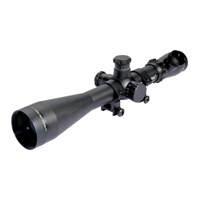 Esta Luneta Sniper com alimentação variável de topo de linha possui ampliação que pode ser ajustada dentro de 3,5x-10x. Possui focinhos ajustáveis ​​de foco rápido para foco ajustado e um disco de ajuste de paralaxe para focar distâncias de 20 metros ao infinito, ideal para airsoft. Mostradores de dedos grandes, permitem ajustes rápidos de vento e sem ferramenta e elevação. O retículo Mil-dot permite fácil compensação de mira para fotos de acompanhamento rápido. O retículo é eletroiluminado em vermelho ou verde e possui 5 configurações de brilho diferentes, proporcionando visibilidade sob quaisquer condições de luz.