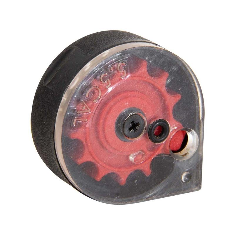 O magazine é próprio para os modelos de carabina Hatsan Flash PCP, e funciona através de um sistema de tambor rotativo com capacidade para 12 chumbinhos no calibre 5,5mm (.22).