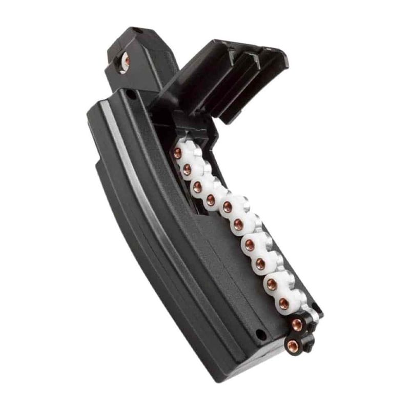 O Magazine para Rifle MCX & MPX Sig Sauer Airgun 4,5 mm foi desenvolvido para atiradores que buscam maior autonomia e confiabilidade em sessões de tiro esportivo e treino. Seu projeto com correia rotativa permite alimentação contínua e minimiza travamentos, enquanto o corpo em polímero de alta resistência combina leveza e durabilidade para uso prolongado.