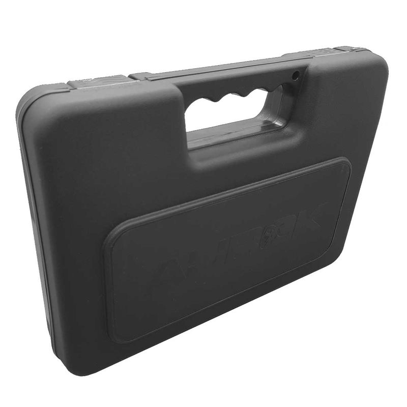Uma maleta em polímero rígido e forrada internamente com espuma macia, a maleta Aurok oferece um dos lados com espuma casca de ovo e o outro lado com espuma lida, dando a devida fixação e proteção para sua arma.
