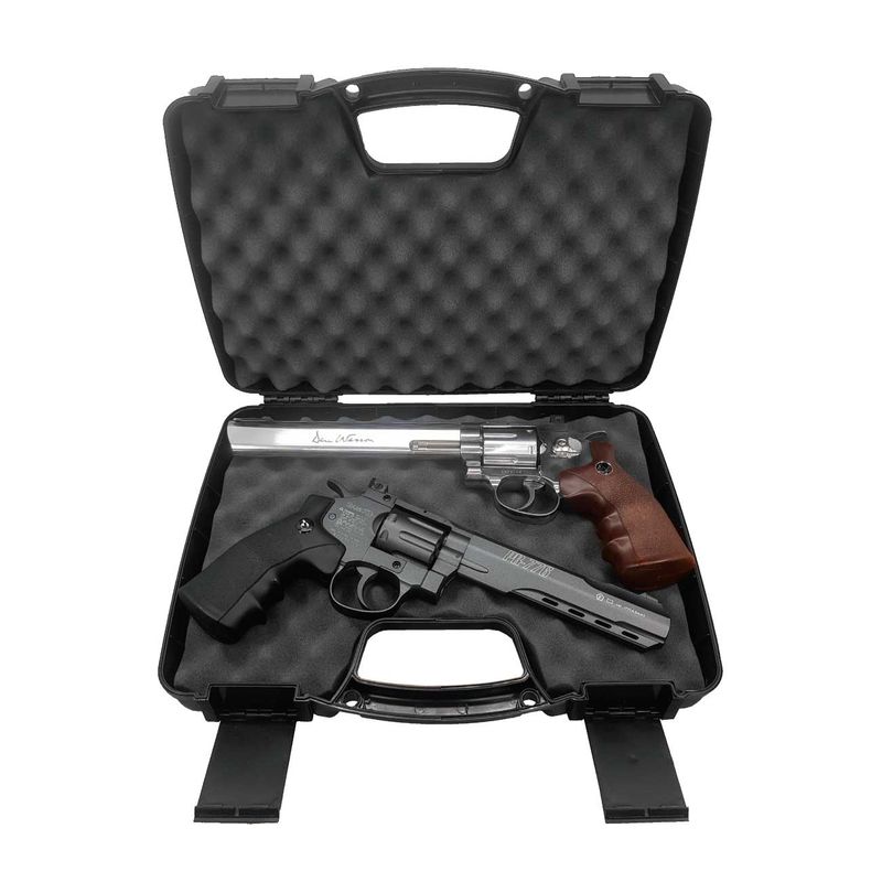 De tamanho ideal para duas armas curtas (verifique as medidas internas), o estojo para armas Gripho oferece espaço para armazenar 1 revólver de até 8,5 polegadas de cano ou até duas armas curtas de até 5 polegadas cada.