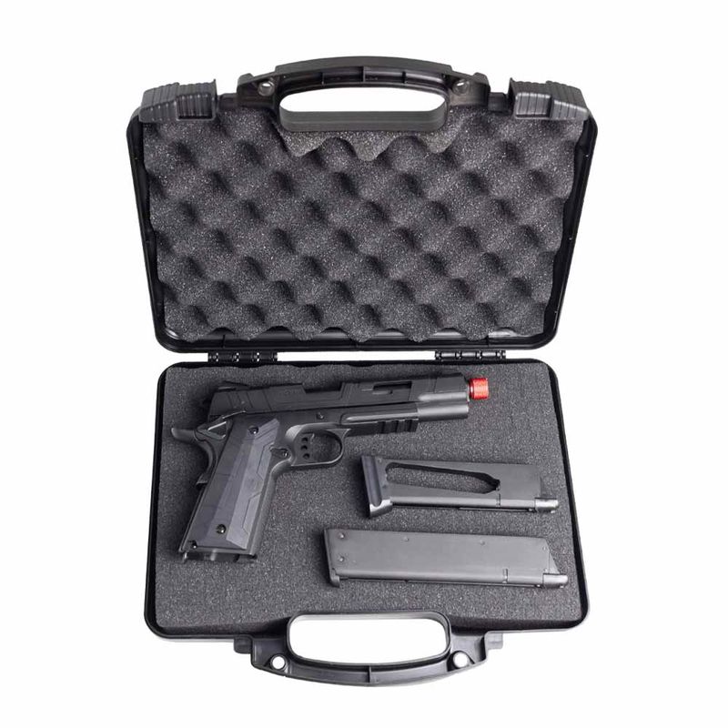 Compatível com qualquer pistola e revolver de até 23cm de comprimento, podendo caber até duas armas menores. Este case rígido e com espuma interna irá proporcionar a segurança e armazenamento que você busca para suas pistolas de airsoft, chumbinho ou até arma de fogo.