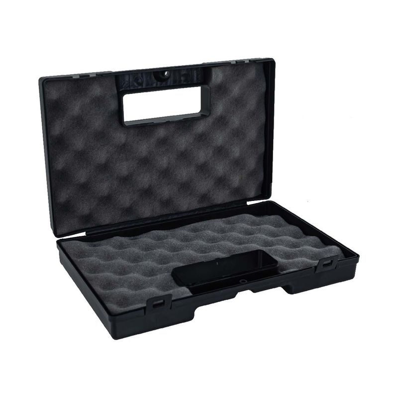 Espaço para carregador reserva mais a arma. Ideal para lugares apertados, como cofres pequenos, guaritas de segurança e porta luvas de carro. Contém orifício para cadeado. Contém exterior confeccionado em polímero de alta densidade e revestimento interno de espuma macia.