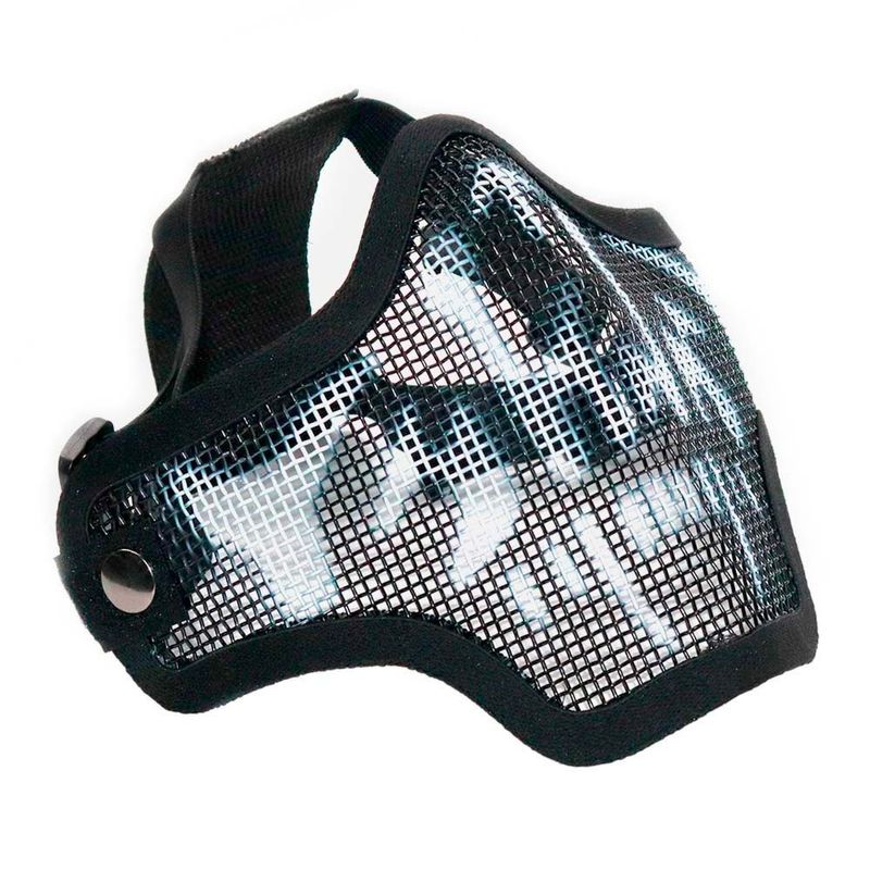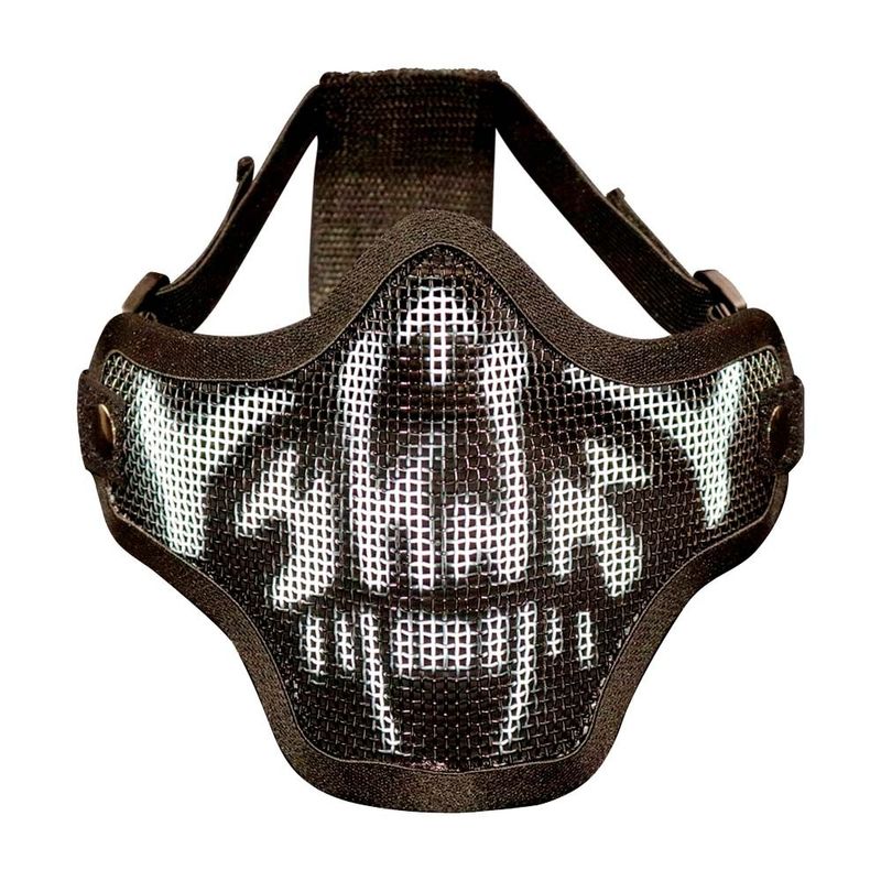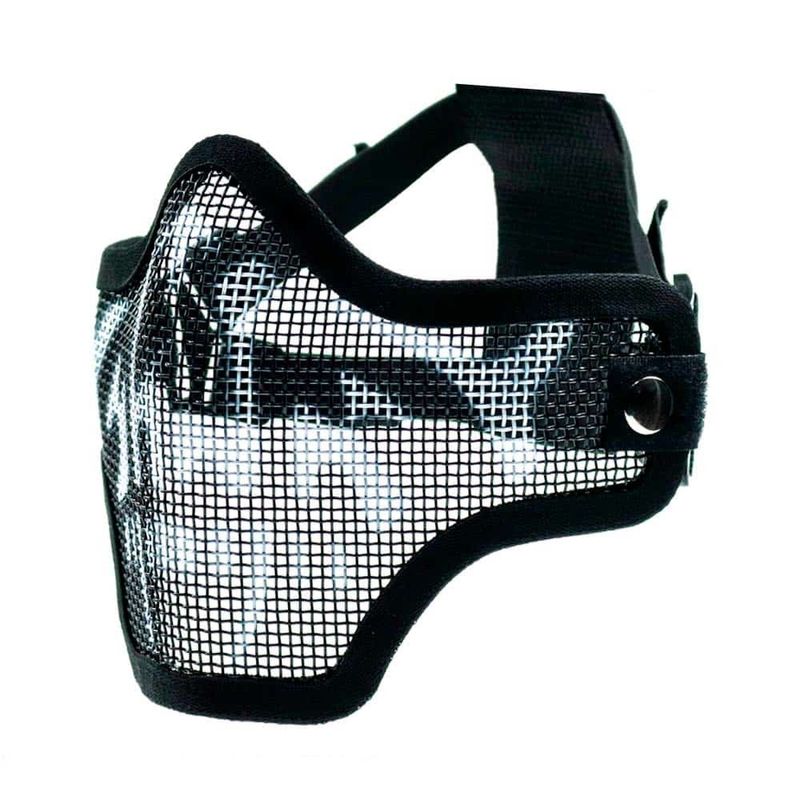 Máscara meia-face para Airsoft construído em tela de metal de alta resistência, alças com regulagem para melhor adaptação e fixação ao rosto e totalmente respirável. Ela pode ser facilmente ajustada, proporcionando maior comodidade ao jogador.
