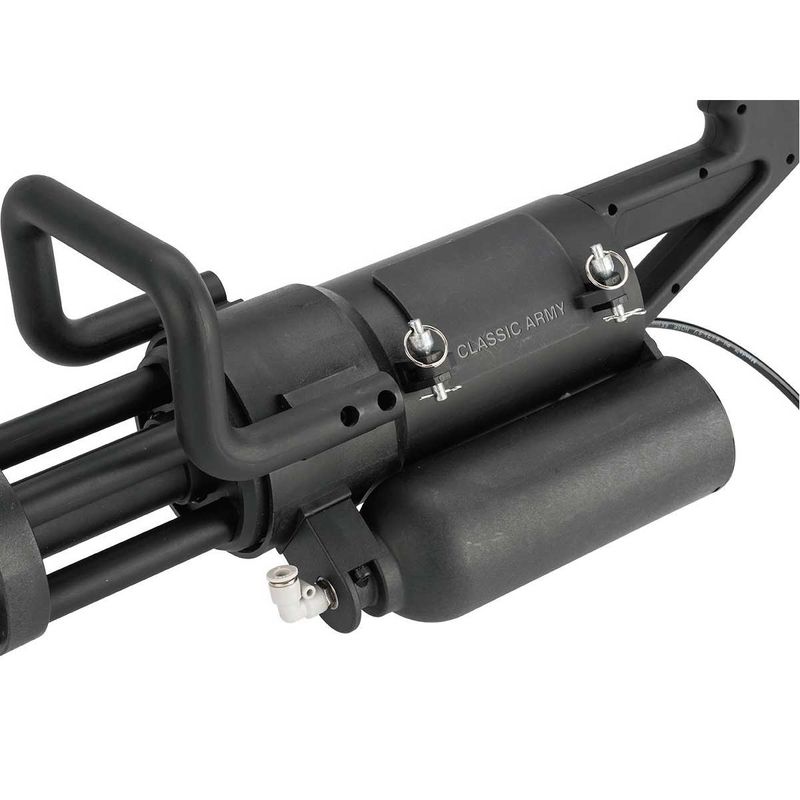 Fabricada pela Classic Army, a M132 Microgun oferece altíssima qualidade, desempenho impressionante e um visual imponente, sendo inspirada na XM214 Microgun — uma metralhadora real com seis canos giratórios.