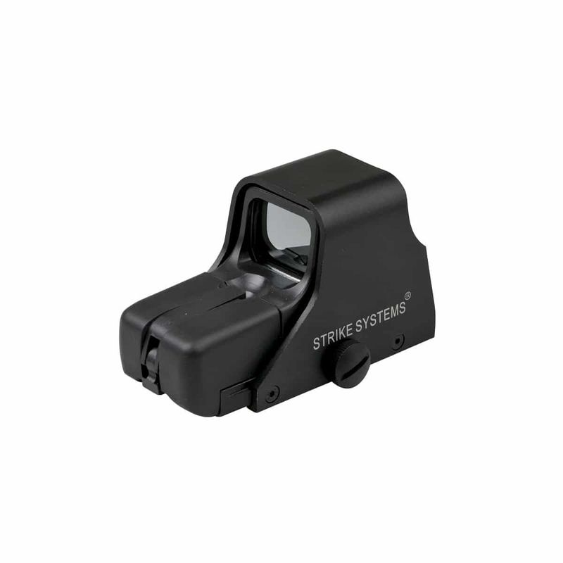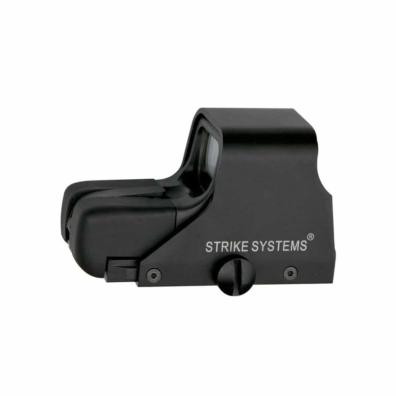 A mira de pontos compacta avançada 551 da Strike Systems é bem construída em metal e plástico rígido. Possui um teclado voltado para a parte traseira, com on / off e controles para alterar a cor do retículo, vermelho ou verde, além de ajustar o brilho do retículo.