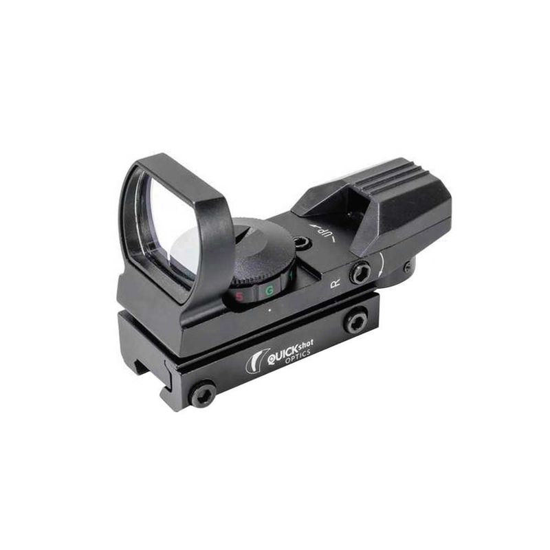 O Red Dot 1x22x32 QuickShot é uma mira holográfica de ponto vermelho e verde com amplo campo de visão.