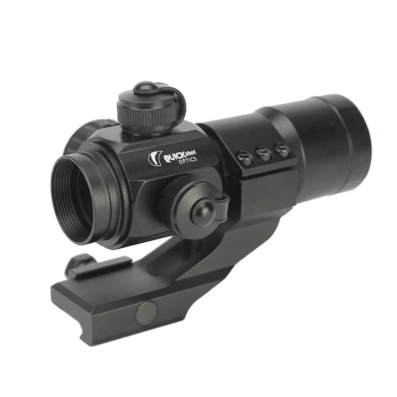O Red Dot QuickShot possui lente reflexiva de 30mm que fornece com eficiência um amplo campo de visão, ideal para alvos rápidos em movimento e tiro esportivo.