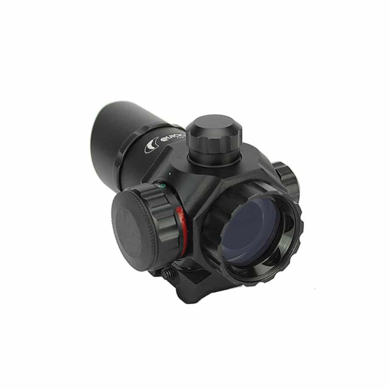 O RED DOT Quickshot 1×22 é um acessório ótico que usa um sistema de prismas que refletem um retículo luminoso (laser) no interior de um receptáculo. A vantagem do Red Dot é que é uma ótima opção para tiros rápidos ou disparos em alvos móveis. É extremamente útil para ambientes de pouca luz, como no interior das matas fechadas, por exemplo.