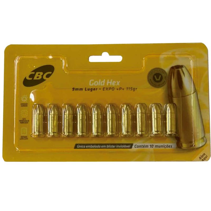 MUNIÇÃO CBC GOLD HEX 9x19MM LUGER EXPO +P+ 115GR