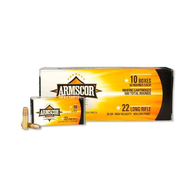 MUNIÇÃO ARMSCOR .22 LR HVHP 36gr – Pacote com 10 Caixas (500 Munições)