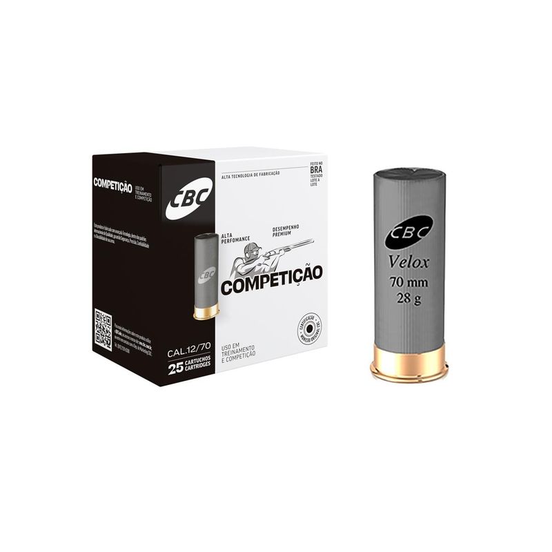 CARTUCHO CBC CALIBRE 12 CÂMARA 70MM C-25 CH-8 Velox 28g
