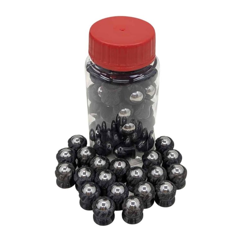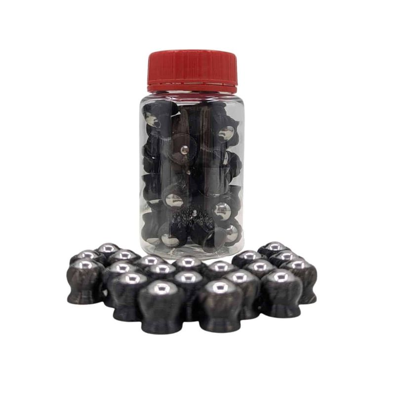 As munições fabricadas em Impressão 3D + Aço Inox polido no calibre .50 têm um efeito enorme no alvo devido ao seu alto peso de 4,75 gramas e formato cônico com ângulo de 80 graus. Toda a energia de impacto está concentrada na ponta de aço afiada! Esses projéteis são particularmente úteis para tiro ao alvo ou defesa pessoal e doméstica.