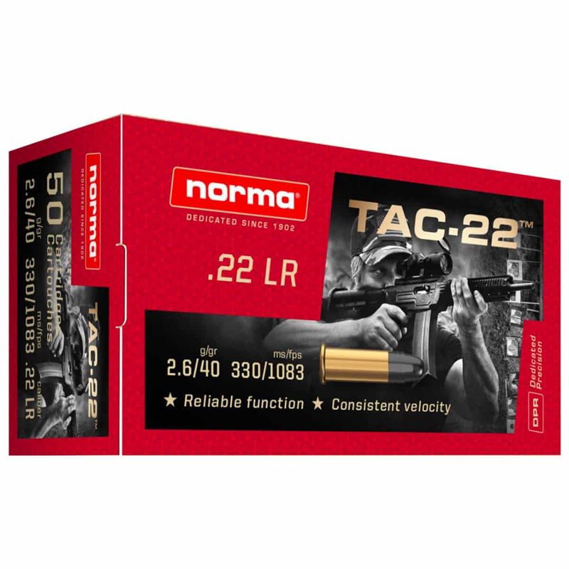 Munição TAC-22 .22 LR Norma 40gr caixa com 50 UN