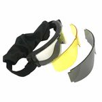 Os Óculos de proteção airsoft Rossi possui 3 lentes de policarbonato. Suportam alto impacto (Escura, transparente & amarelo), tem proteção de raios UV-400  para o maior conforto e segurança. A distância entre a lente e a armação permite a entrada de ar, diminuindo significativamente o efeito embaçante, sem permitir que a BB entre.