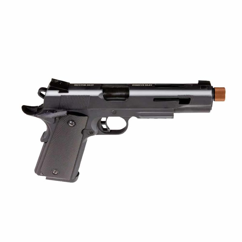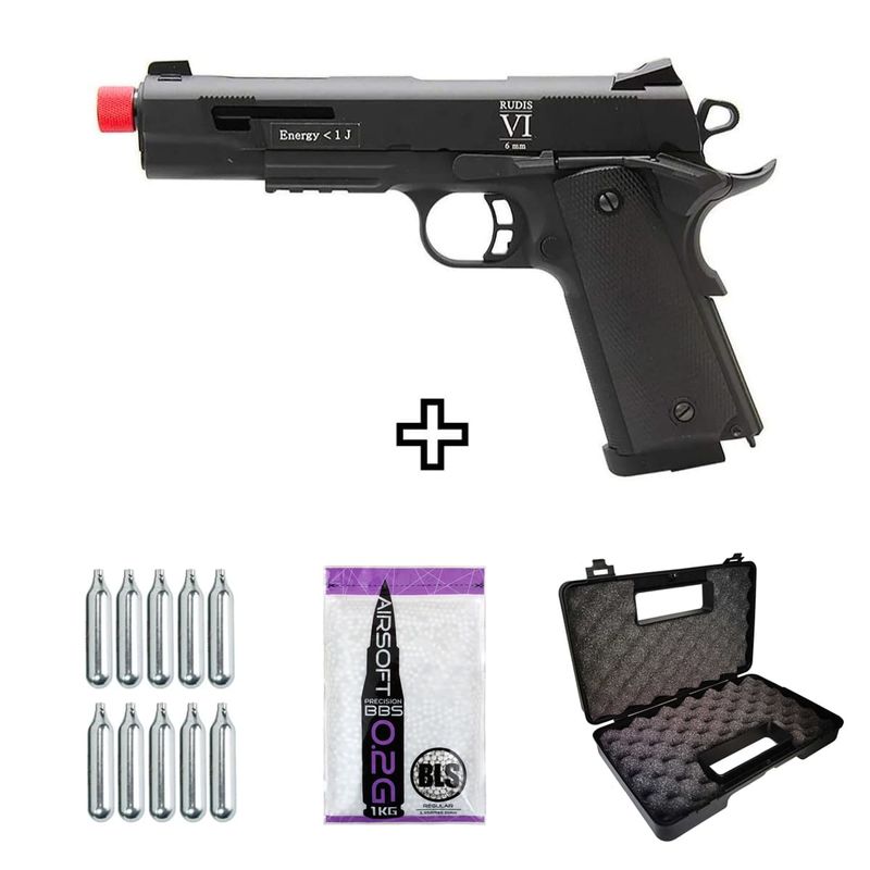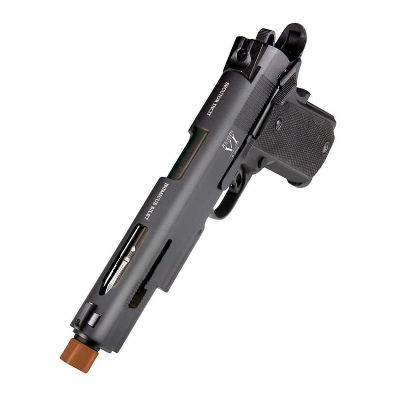 A Pistola 1911 Rudis Secutor VI Airsoft GBB Blowback Full Metal Kit dispara no modo Semi Automática com velocidade de 300fps - 91m/s e energia de 0,83 Joules Ver mais