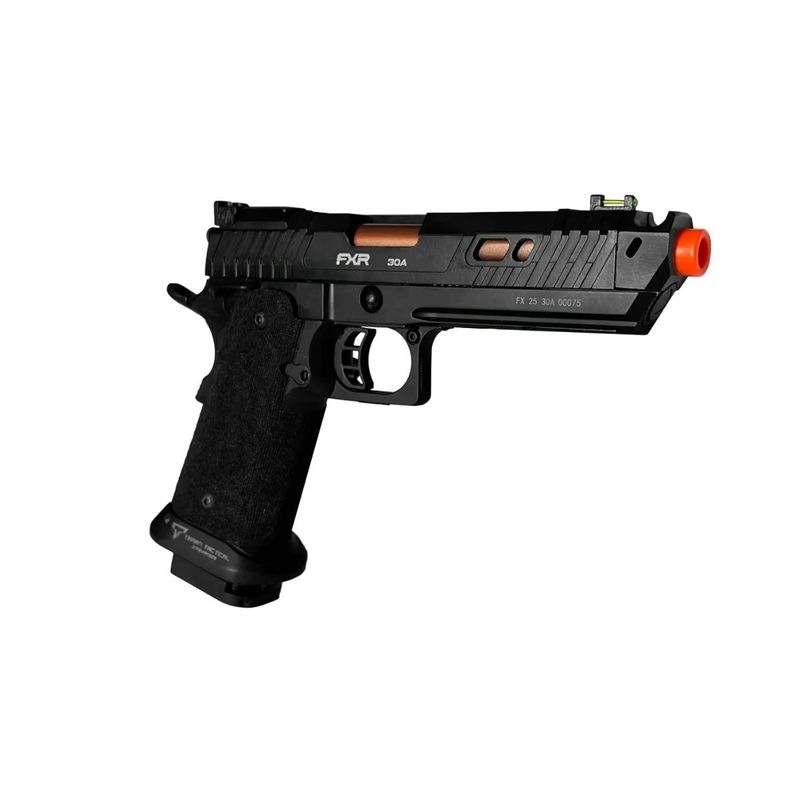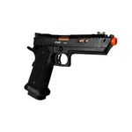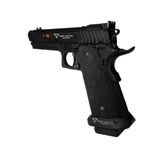 Sua estrutura Full Metal garante resistência superior, peso realista e excelente sensação no manuseio. O acabamento em preto fosco aliado aos detalhes táticos, como slide aliviado, gatilho flat e empunhadura com textura abrasiva antiderrapante, confere ao modelo um visual agressivo e moderno.
