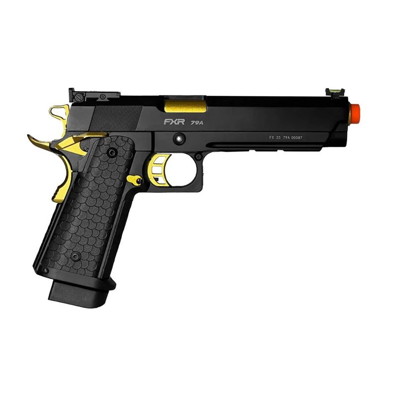 A Double Bell 1911 Hi-Capa 79A atinge até 310fps com BBs 0,20g, oferecendo excelente desempenho para jogos indoor e outdoor.
