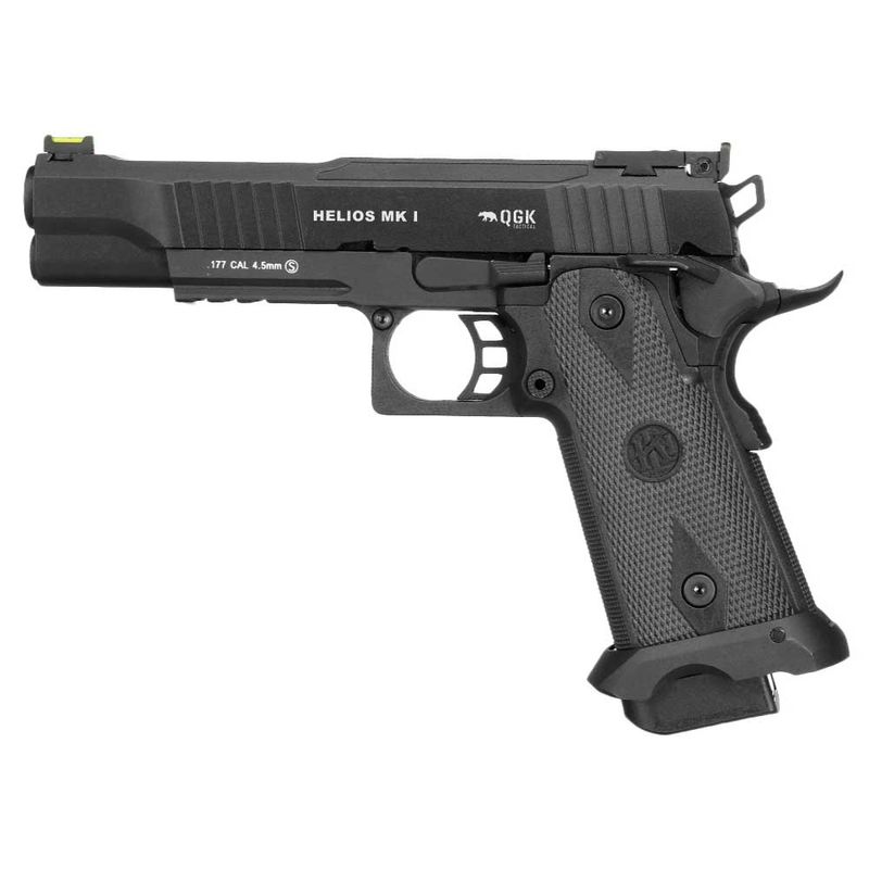 A QGK traz ao Brasil seu mais novo lançamento: a pistola de pressão Co2 QGK Helios MK-I 4,5mm, uma plataforma customizada no estilo 1911, com função blowback realístico, full metal e design blackout.