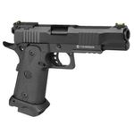 O ferrolho blowback simula fielmente o movimento real do disparo, incluindo a parada do slide ao fim do carregador. Conta com trilho tático frontal 20mm, miras com fibra óptica verde, sistema Hop-Up ajustável, trava ambidestra, trava de punho funcional e desmontagem sem ferramentas — ideal para praticantes exigentes.