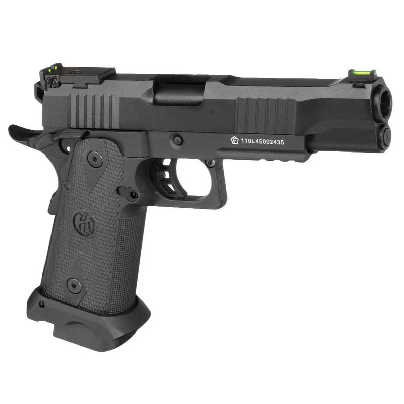 Fabricada toda em metal (Full Metal), a pistola 1911 Hi-Capa Helios possui peso balanceado de 1.080g descarregada.