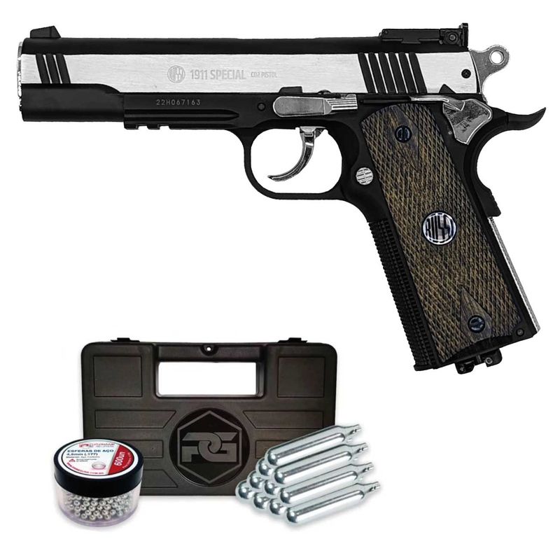 A Rossi traz ao Brasil o mais novo lançamento da linha Wingun, a famosa pistola 1911 Special Combat Classic CO2 - em calibre 4,5mm esfera de aço - vem como uma versão pesada com slide em metal.