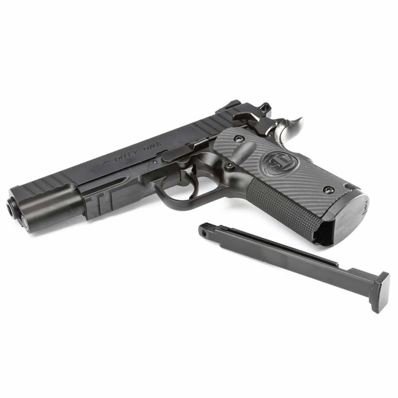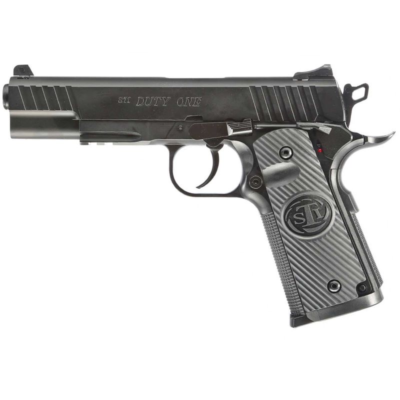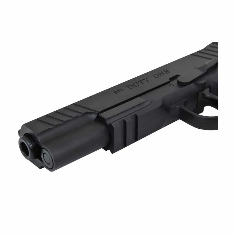 A ASG 1911 STI Duty One é uma pistola Airgun, ou seja, uma arma de chumbinho que dispara esferas de aço no calibre 4,5mm (.177), a uma velocidade de até 373fps, com sistema Blowback (recuo do ferrolho a cada disparo) e com capacidade para 20 esferas de aço, oferecendo um rendimento aproximado de 55 disparos com um cilindro de CO2 de 12g.