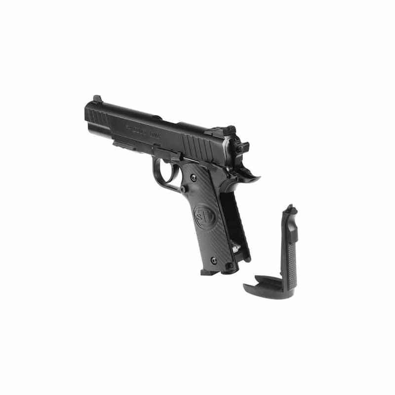 A Pistola Airgun 1911 STI DUTY ONE ASG CO2 4,5mm dispara no modo Semi Automática com velocidade de 373fps - 114m/s e energia de 2,8 Joules Ver mais