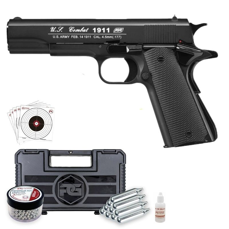 Pistola de Pressão CO2 ASG M1911 US-C 4,5 mm Full Metal Blowback – Kit Completo Licenciado Kit