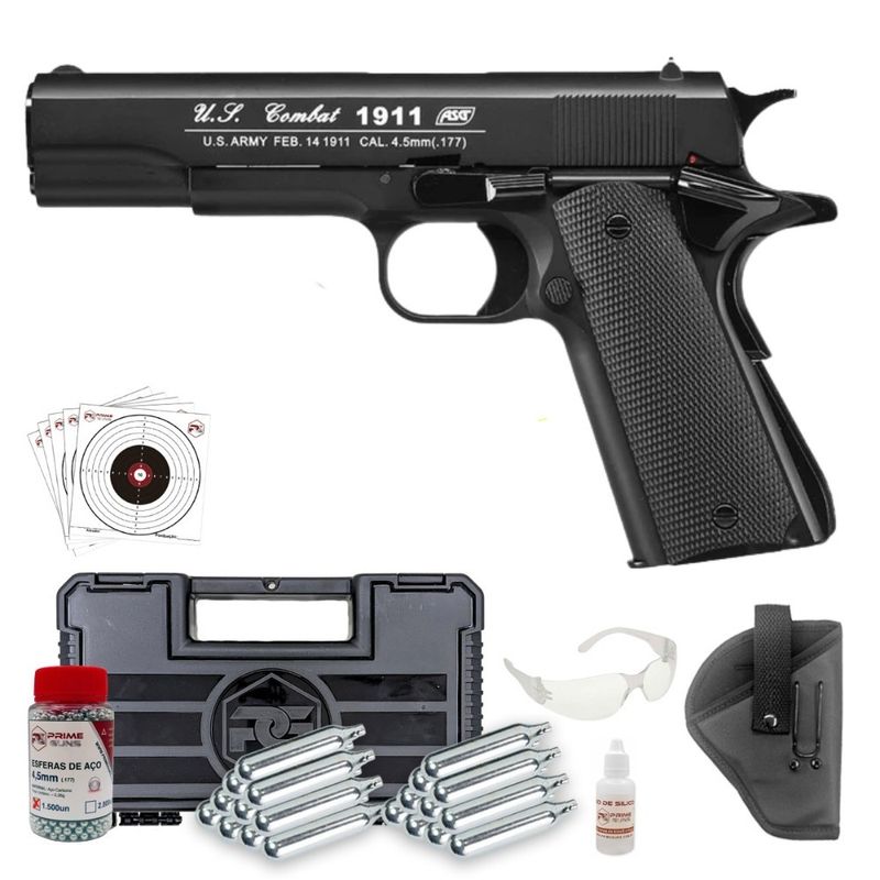Pistola de Pressão Co2 ASG M1911 US-C 4,5mm Blowback Vollmetall Super Kit – Licenciada