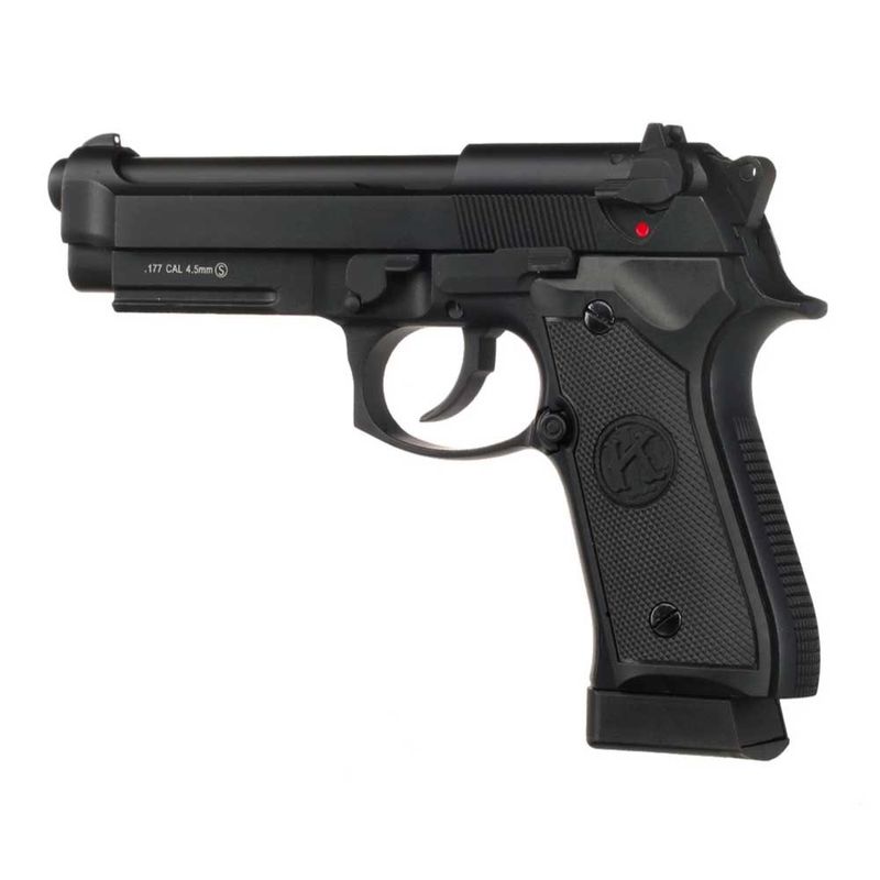 A pistola M92 A1 Preta da QGK/KLI possui uma velocidade média de 311fps - 95m/s com esferas de aço 4,5mm.