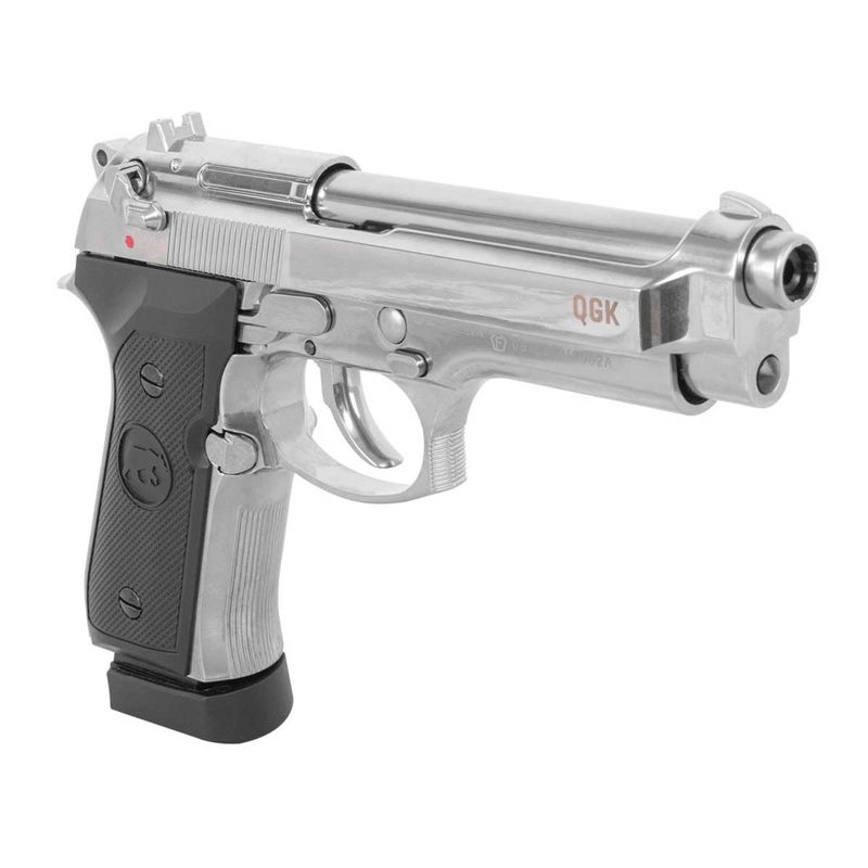 A pistola M92 Cromada da QGK/KLI possui velocidade média de 311 fps (95 m/s) com esferas de aço 4,5mm