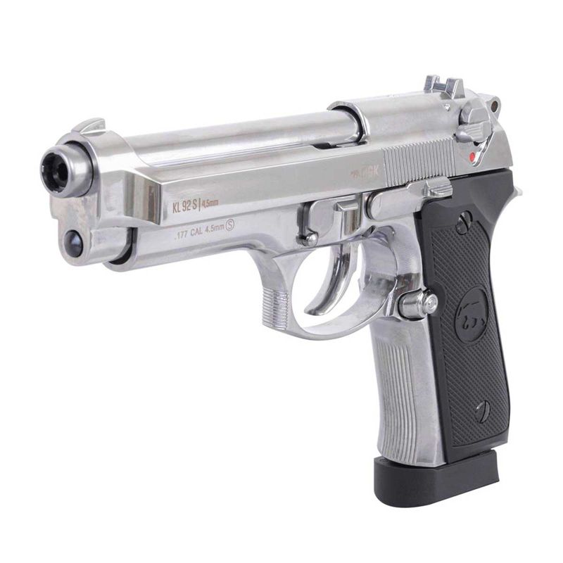 ArmasArmas de Chumbinho AirgunsPistola Co2Armas Curtas: Pistola e RevólverPistola Airgun Beretta M92 Cromada KLI Blowback 4,5mm