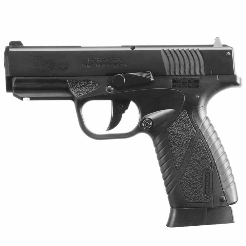 A pistola de pressão Bersa BP9CC é uma versão de CO2 no calibre 4,5mm BB do fabricante argentino Bersa, referência em armas de defesa pessoal. A Bersa foi fundada por três imigrantes italianos na década de 1950 e é hoje uma das principais fabricantes da Argentina.