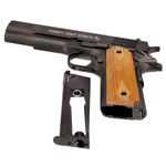 O modelo 1911 Classic preserva as linhas originais dessa pistola histórica, incluindo o famoso beavertail (protetor de mão traseiro), as travas manuais e o característico corpo em metal com empunhadura de madeira. Esta versão de airgun reproduz com precisão todos esses detalhes — e muito mais.
