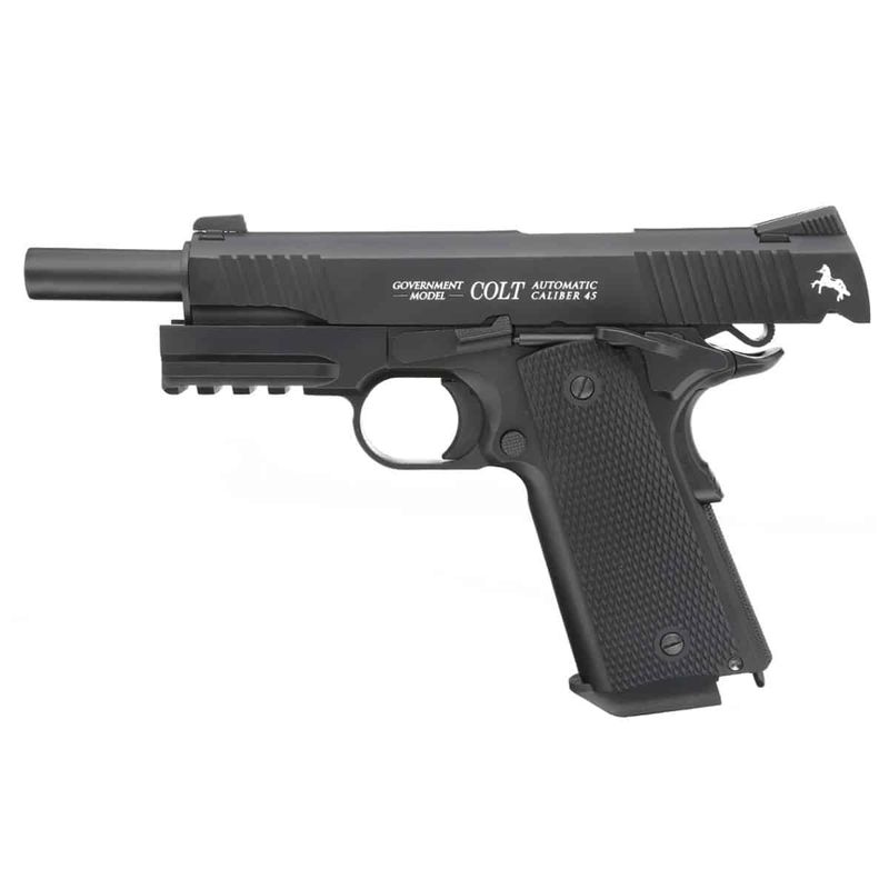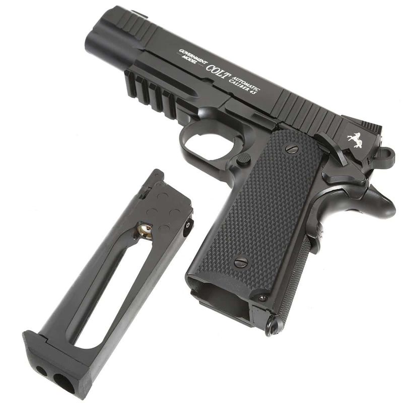 A Colt 1911 M45 oferece uma velocidade boa e padrão em armas com blowback realístico, batendo médias de 320fps (97,5m/s) com esferas de aço padrão, calibre 4,5mm de 0,36g.
