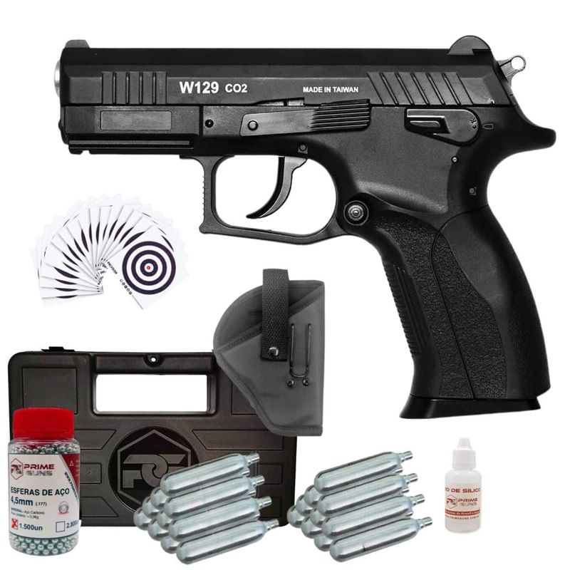 + Maleta de Transporte + 1.500 Esferas 4,5mm + 20 Co2 12g + Alvos + 1 Óleo de Silicone + Coldre Universal