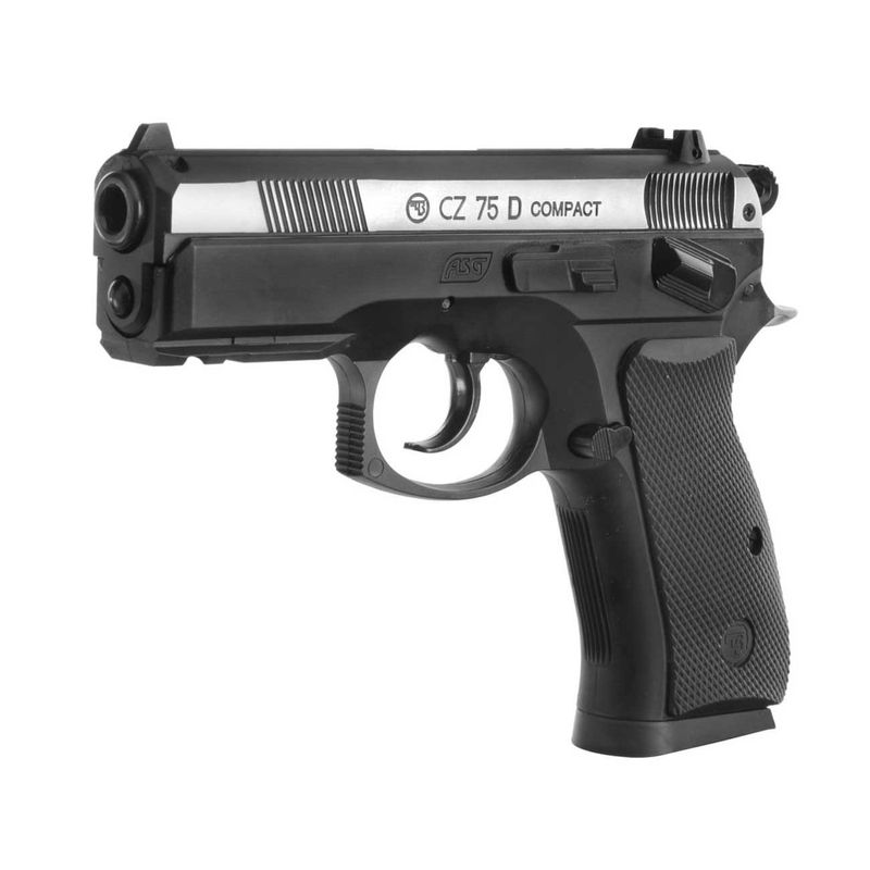 Uma réplica detalhada do CZ75D Compact, fabricada em nylon resistente ou plástico ABS com ferrolho de metal em acabamento dual tone. A réplica da ASG possui todas as marcações e letras originais graças à licença CZ, o que torna o CZ75D Compact muito interessante não só para jogadores, mas também para colecionadores.