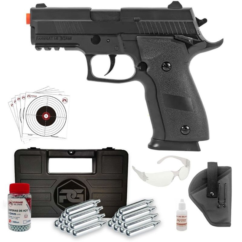 + Maleta de Transporte + 20 Co2 12g + 1500 Esferas de Aço + Coldre Universal + Óculos de Segurança + Óleo de Silicone + Alvos