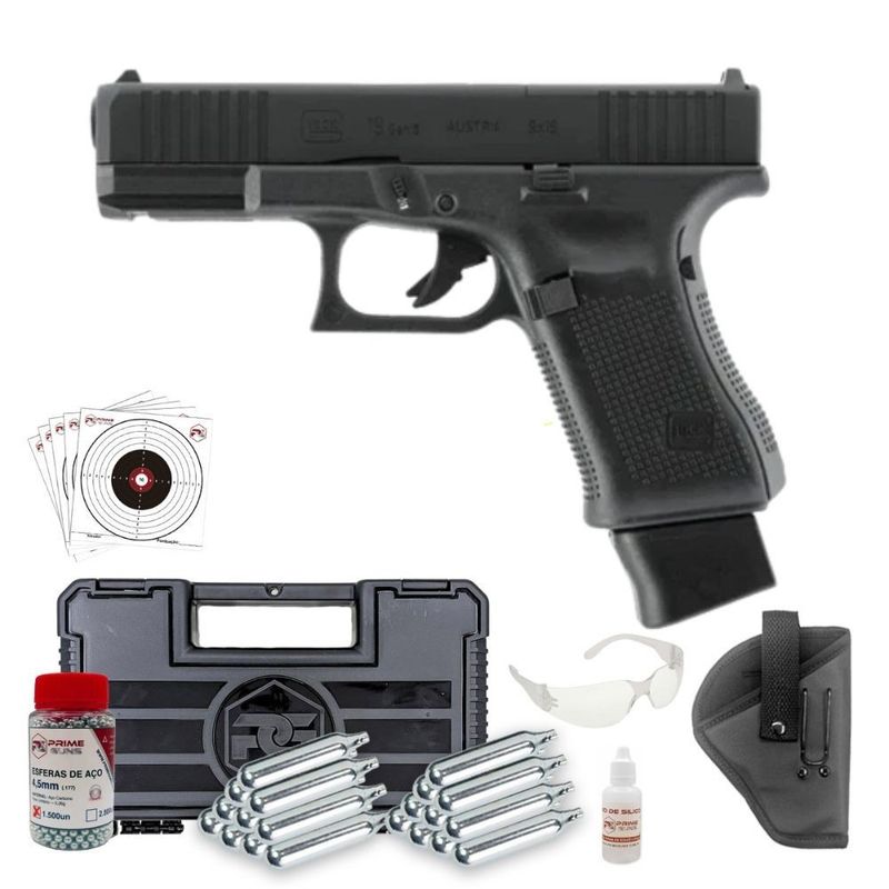 ArmasArmas de Chumbinho AirgunsPistola Co2Armas Curtas: Pistola e RevólverPistola Airgun Glock 19 Gen5 MOS Co2 4,5mm Super Kit