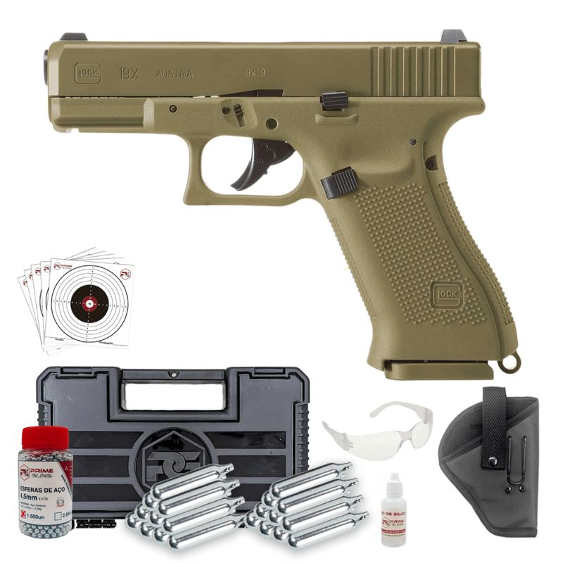 A Pistola Airgun Glock 19x Coyote Gen5 Blowback Co2 Super Kit dispara no modo Semi Automática com velocidade de 365fps - 111m/s e energia de 2,2 Joules Ver mais