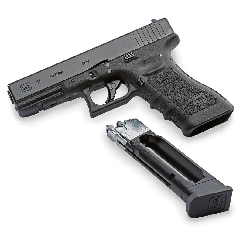 Essa réplica licenciada reproduz com fidelidade todos os detalhes da Glock 17 Gen3, com slide em metal blowback, marcações originais Glock, trilho Picatinny inferior e ergonomia clássica. Ideal para prática de tiro, treinos táticos e diversão com precisão.