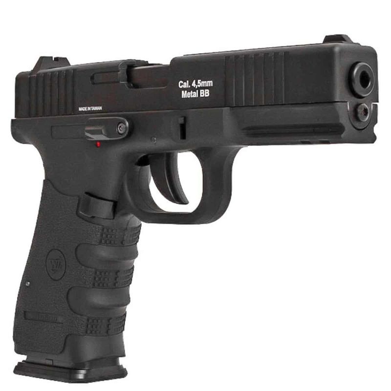 Mesmo com ação Blowback, que é o recuo do ferrolho a cada disparo, a pistola W119 Wingun possui mais de 420fps (120m/s) de velocidade e um cilindro de CO2 rende cerca de 60 bons disparos.