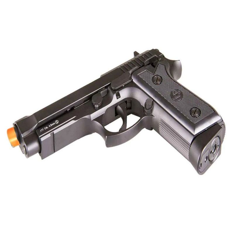 O modelo PT92 da KWC vem no calibre 4,5mm de esferas de aço, com uma velocidade de 328fps de velocidade, você alcança o máximo de realismo.