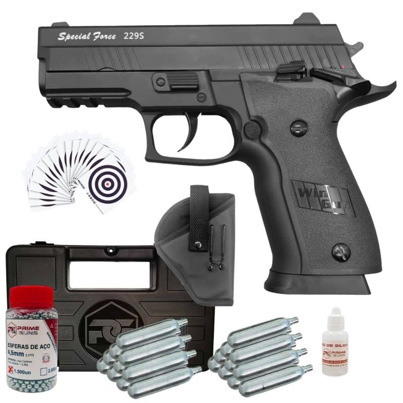 + Maleta de Transporte + 1.500 Esferas 4,5mm + 20 Co2 12g + Alvos + 1 Óleo de Silicone + Coldre Universal