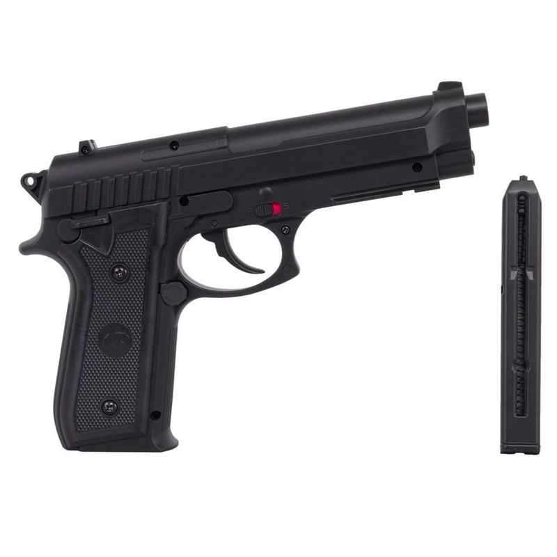 O magazine removível comporta até 20 esferas de aço e a cápsula de CO2 é alojada na empunhadura da pistola. Mesmo sendo NBB, o peso da P92 é próximo de uma arma real, com cerca de 970g, conferindo excelente equilíbrio e realismo no manuseio.