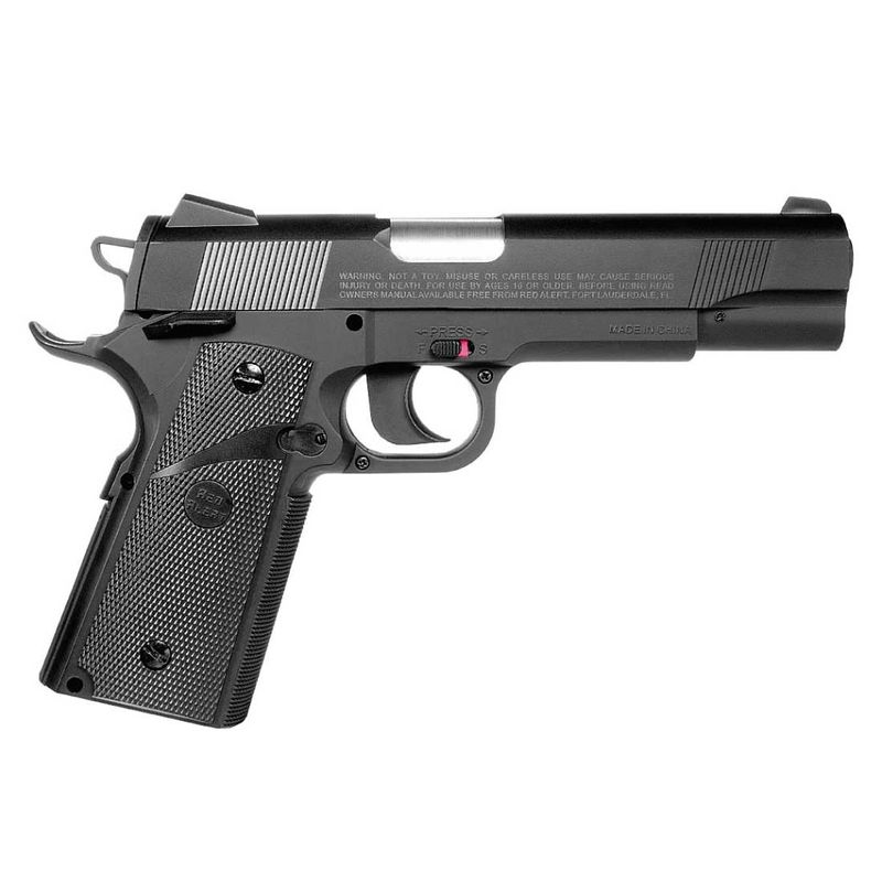 A Pistola Airgun Red Alert RD 1911 NBB Gamo Co2 4,5mm + Coldre dispara no modo Semi Automática com velocidade de 430fps - 131m/s e energia de 3 Joules Ver mais