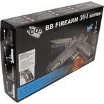 A pistola Rossi 1911 CO2 6mm possui uma velocidade média de 100m/s (328fps) com esferas 6mm de 0,86g.