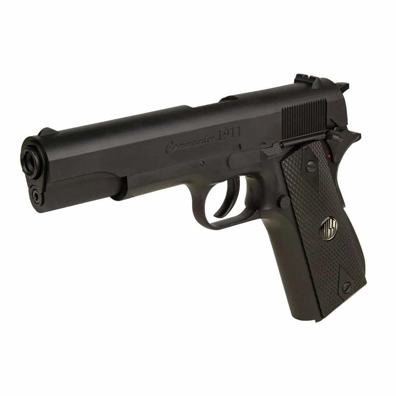 A pistola 1911 W125B dispara esferas de aço 4,5mm a uma velocidade de 400fps (120m/s), com excelente rendimento.